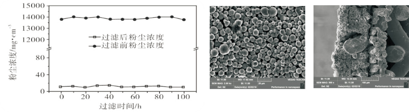 多晶硅生产过程烟气量大,成分复杂,粉尘颗粒小(0.1~10μm),传统过滤方式采用金属粉末烧结材料、多层烧结金属丝网过滤材料,其普遍存在过滤效率低,拦截效率低等问题。ZSWF-粉毡金属膜,采用50μm精密过滤层复合400μm支撑层,过滤精度可达0.1μm,渗透效率高于传统材料5倍以上,可有效代替传统粉末烧结多孔材料及烧结金属丝网多孔过滤材料。