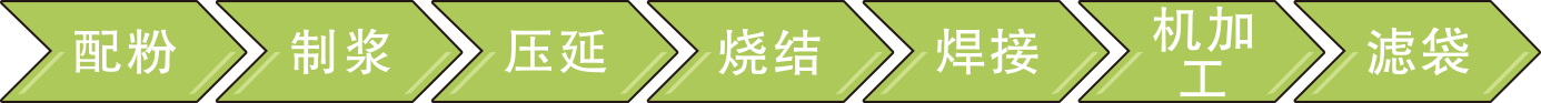 公司使用大型压延成型机制备粉毡滤料毛坯,具备生产效率高、产品缺陷少的优点。坯料经过连续烧结炉进行脱脂和高温烧结形成冶金结合,再通过龙门式电阻焊机制成滤筒,保证材料强度,最后使用激光焊接与法兰、孔管等制成ZSWF-粉毡金属滤袋产品。同时公司配备有激光切割机、数控车床等多种加工方式,保证产品各项尺寸精度和外观颜色满足要求。